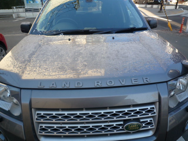 Freelander 2のボンネットにも、ご覧の通り霜がビッシリ張っています。