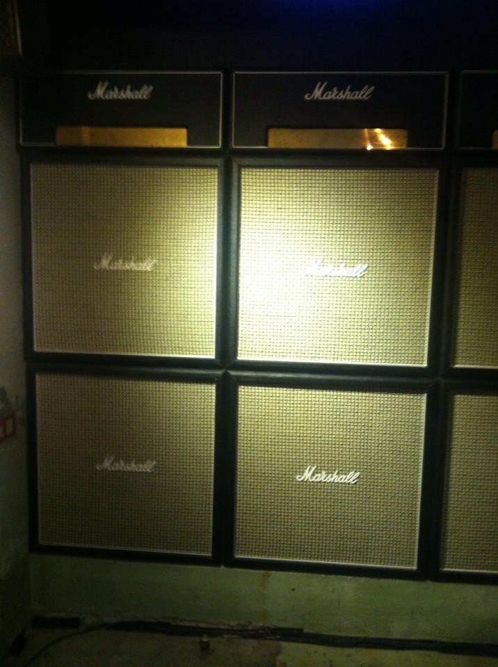 ご覧のようなマーシャルのアンプとキャビネット・スピーカーを見ると、ロックマニアならピンと来るでしょう。