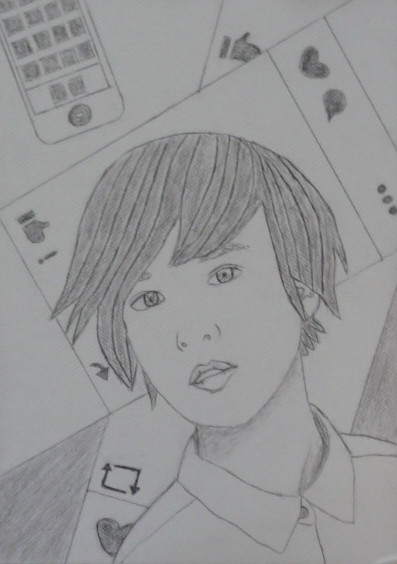 ちなみに、ハットの下はロング・ヘアーです。