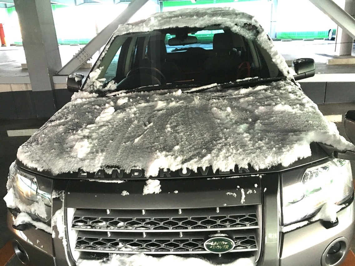 氷点下6℃の中で、フロントガラスに付いた氷や雪を取り除く作業に追われました。