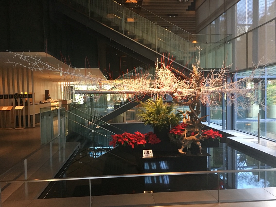 まずエントランスに入りますと、上の写真の草月流の巨大な生花が出迎えてくれます。