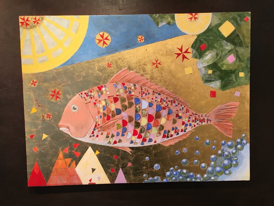 作品は上の写真の、"Pagrus major"のような海鮮類などの食材を題材にした作品が印象的でした。