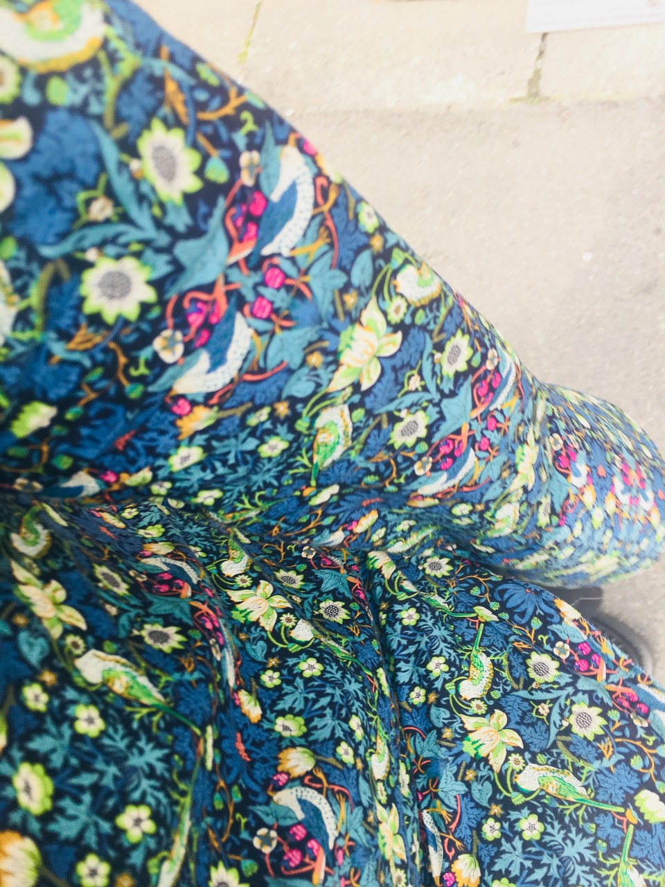 この日は、ウィリアム・モリスの『いちご泥棒』のプリントシャツを着て、市街地を歩きました。
