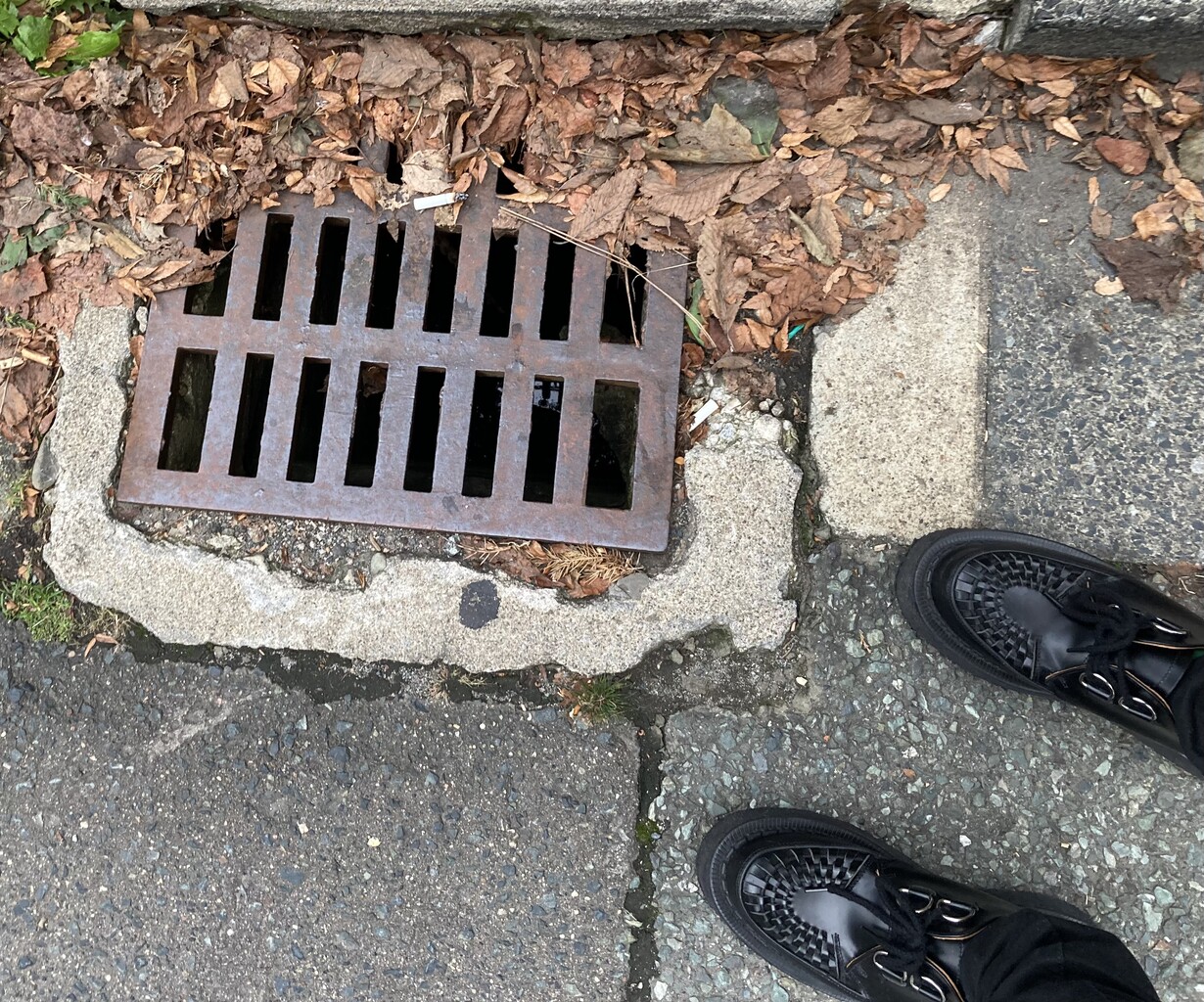 ちなみに、向かって右の棒状の影は、電柱の影です。