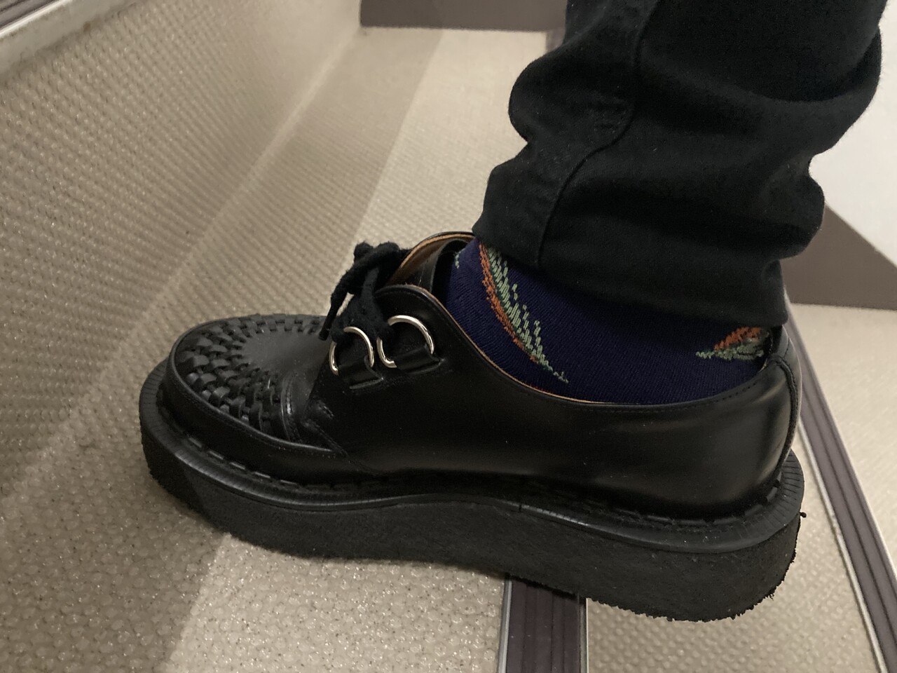 上の写真はブラックスキニーと、ジョージコックスの靴を撮影したものです。