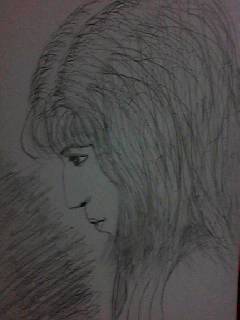 これは、大分昔に描いたデッサンです。『つぶやき』という作品のエスキースですが、仕上がった作品より、エスキースの方が良かった一例です。日本人の女性の横顔は、綺麗ですよね。白人の女性の横顔も綺麗ですけど、日本人の感覚だと、鼻が高過ぎて違和感を感じてしまいます。この、何かを考え込んで物憂げな女性は、何かを、まさにつぶやく所です。何か悲観的な内容を、つぶやきそうです。これは、私の『絵で描く詩』のコンセプトの早い頃からの例でしょう。