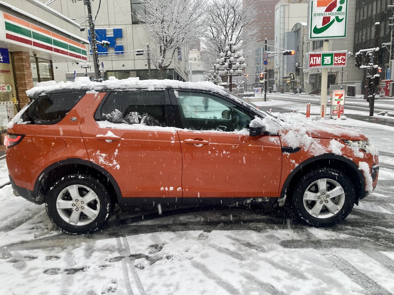 ランドローバーに積もった雪をSUV用のスノーワイパーで、鼻歌まじりに、雪を下ろしました。