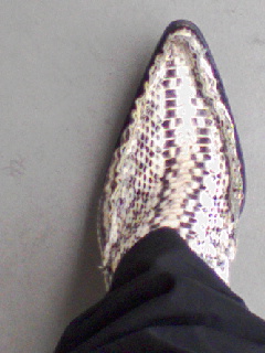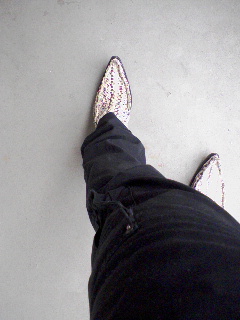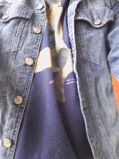 今日はデニムのジャケットにカーゴパンツと先の尖ったスネークの靴にカスケットといったファッションです。