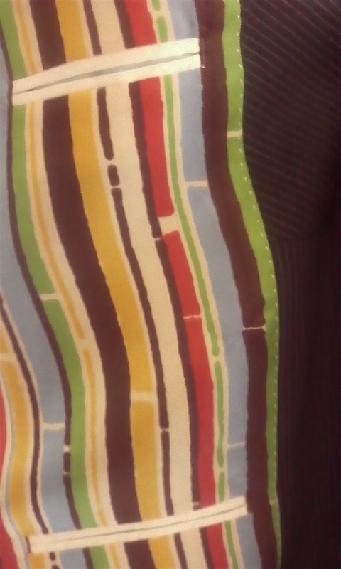 襟には紺と黒の2種類の生地が使われています。白いステッチが眩しいです。