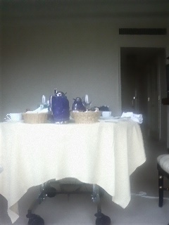 朝食のルームサービスの様子です。むむむ、完全に経済観念は破綻してますね。