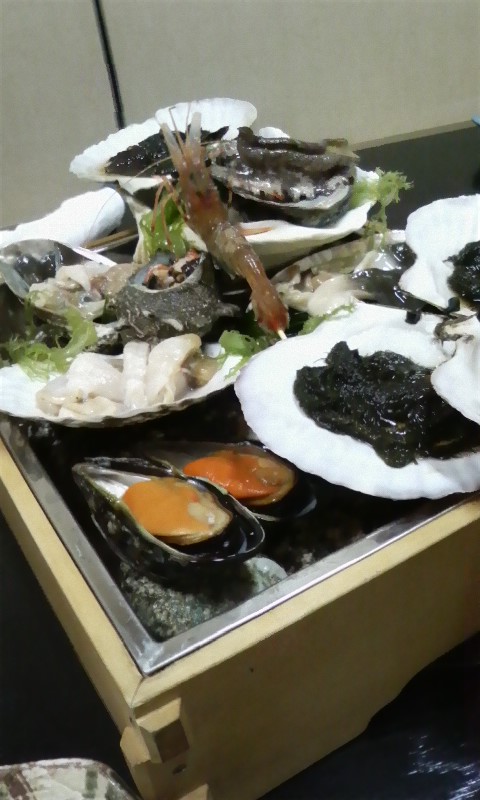 食事は中村家へ行って、貝焼きを食べました。